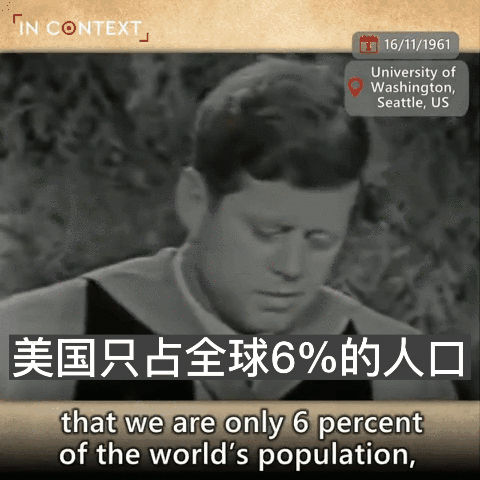 ▲1961年11月,時任美國總統肯尼迪在華盛頓大學發表演講時表示,美國人無法將自己的意願強加於全世界,不存在能夠解決所有問題的美國方式。