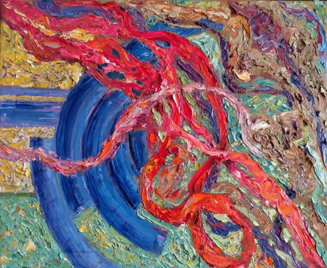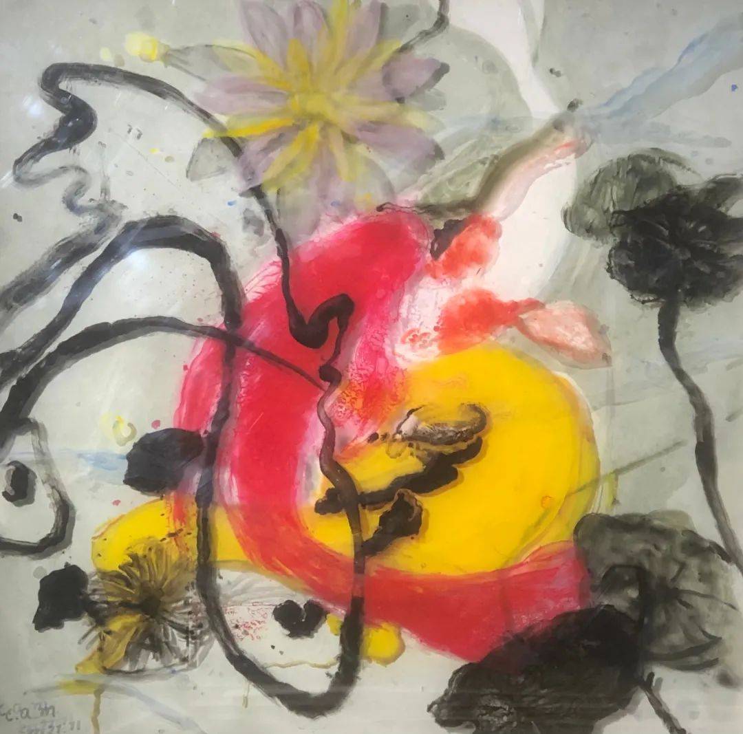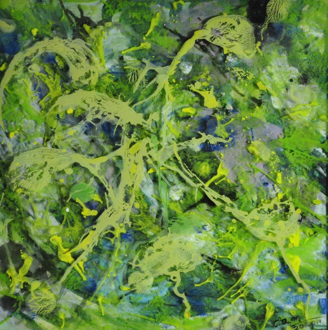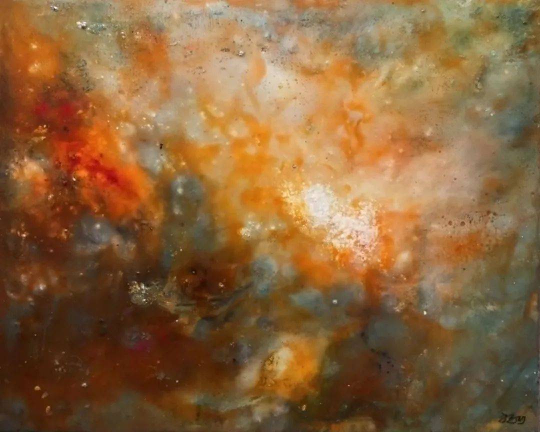 2022年參加國際抽象藝術展,譚丁熱流臘畫作品《山水境》02.榮獲二等獎