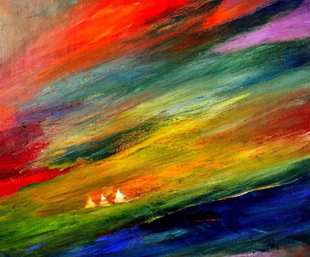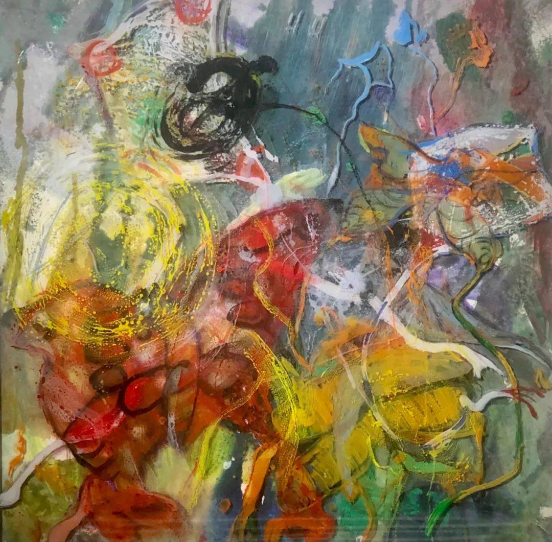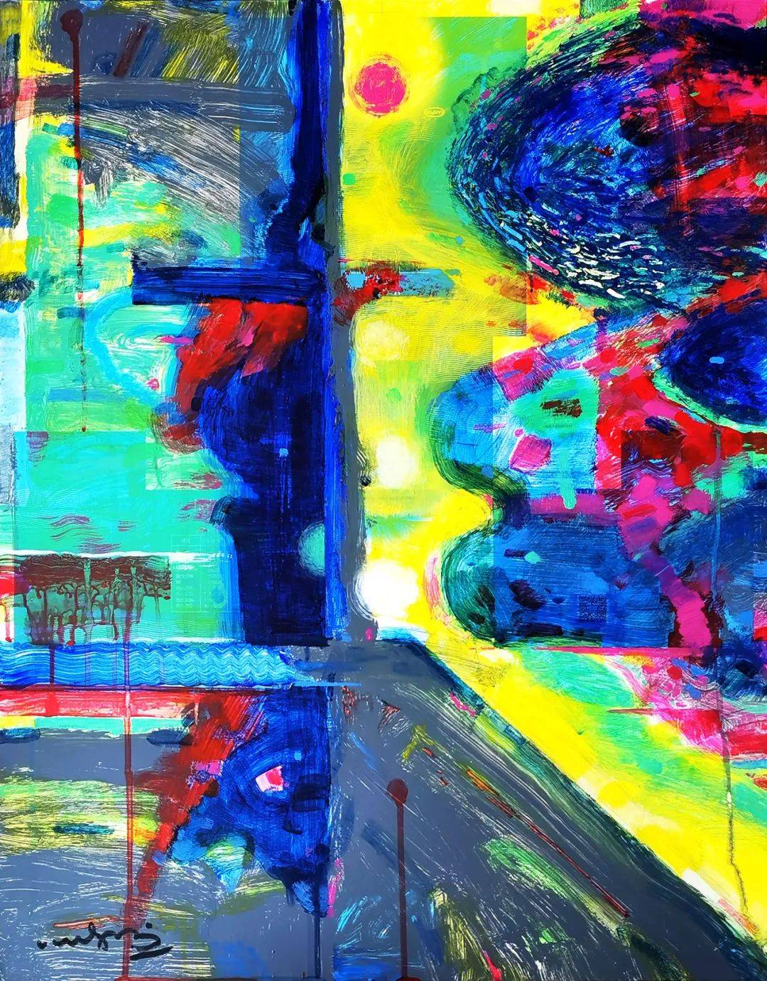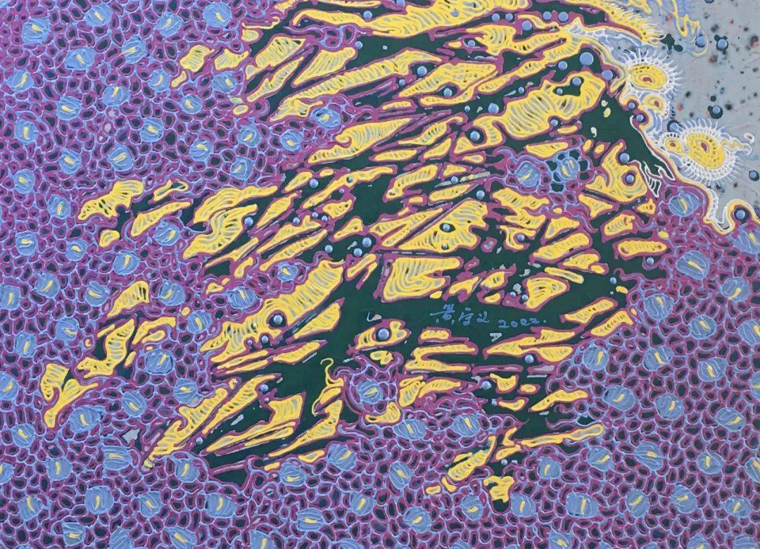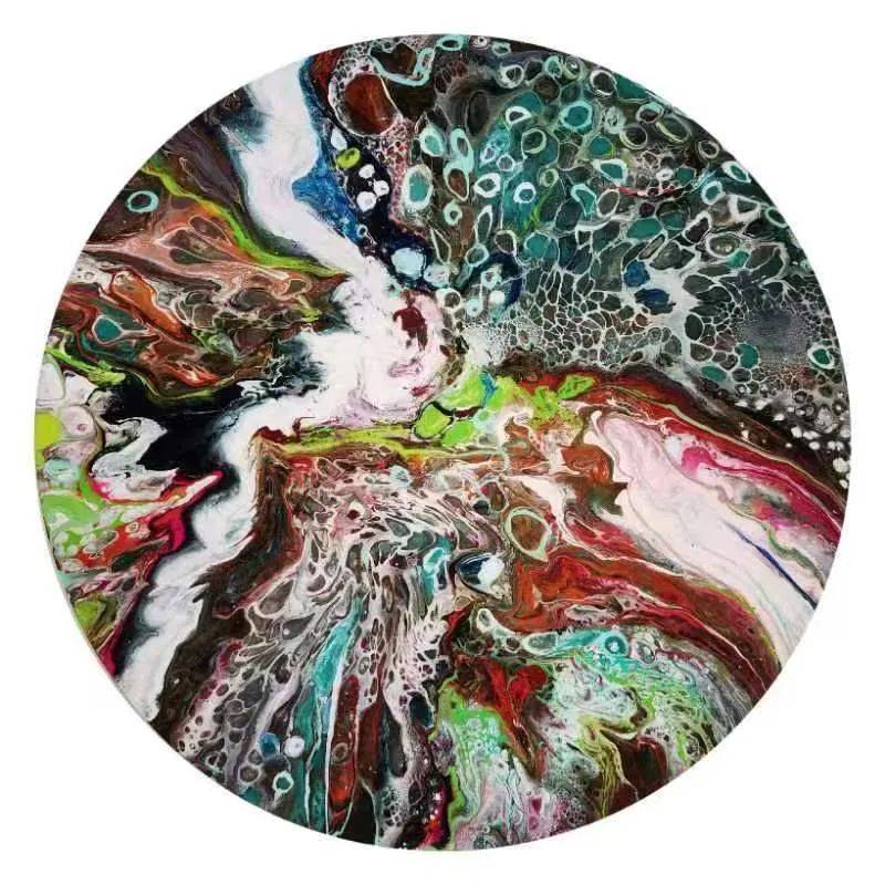 2022年參加國際抽象藝術展,譚丁熱流臘畫作品《山水境》02.榮獲二等獎