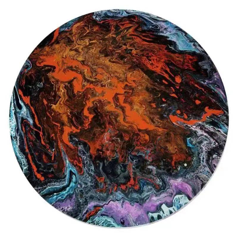 譚丁熱流臘畫採用高温將蠟材融化,與礦物質顏料層層混合創作而成,火中取寶呈現不可控的類似窯變的效果,不可臨摹不可複製,每一件作品都是孤品。而且在創作過程中,色彩與蠟材的結合以流動的方式形成獨特的流淌肌理效果,哪怕譚丁自己也無法複製一模一樣的兩張作品,讓譚丁熱流臘畫成為無法造假的藝術珍品,這也成為所有畫種中的巨大優勢。