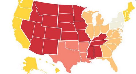 美國截至去年11月的通脹熱圖,顏色越深通脹越厲害。《華爾街日報》製圖