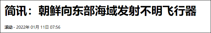 僅在6天前,韓國聯合參謀本部5日發佈消息稱,朝鮮當天向朝鮮半島東部海域發射不明飛行器。韓聯社報道稱,這是朝鮮新年以來首次進行武力示威。