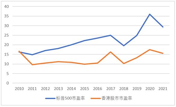 美國標普500指數公司和香港股市的歷史平均市盈率(截至2021年12月10號)
