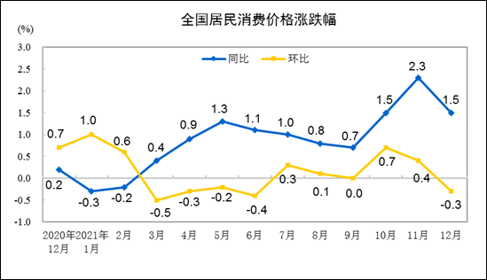 國家統計局:2021年全年,全國居民消費價格比上年上漲0.9%