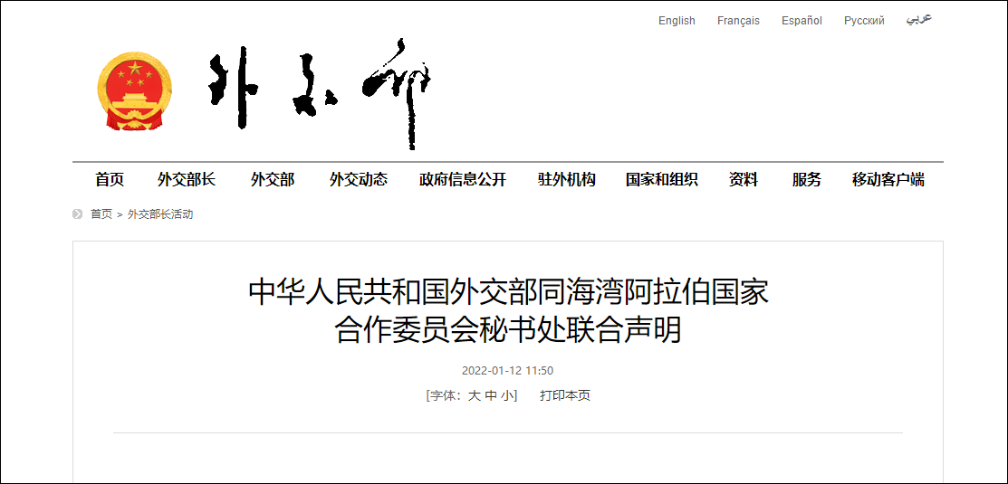 中華人民共和國外交部同海灣阿拉伯國家合作委員會秘書處聯合聲明