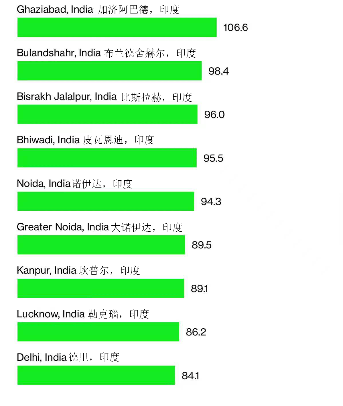 2020年全球10個污染最嚴重的城市中,印度佔了9個。圖自彭博社
