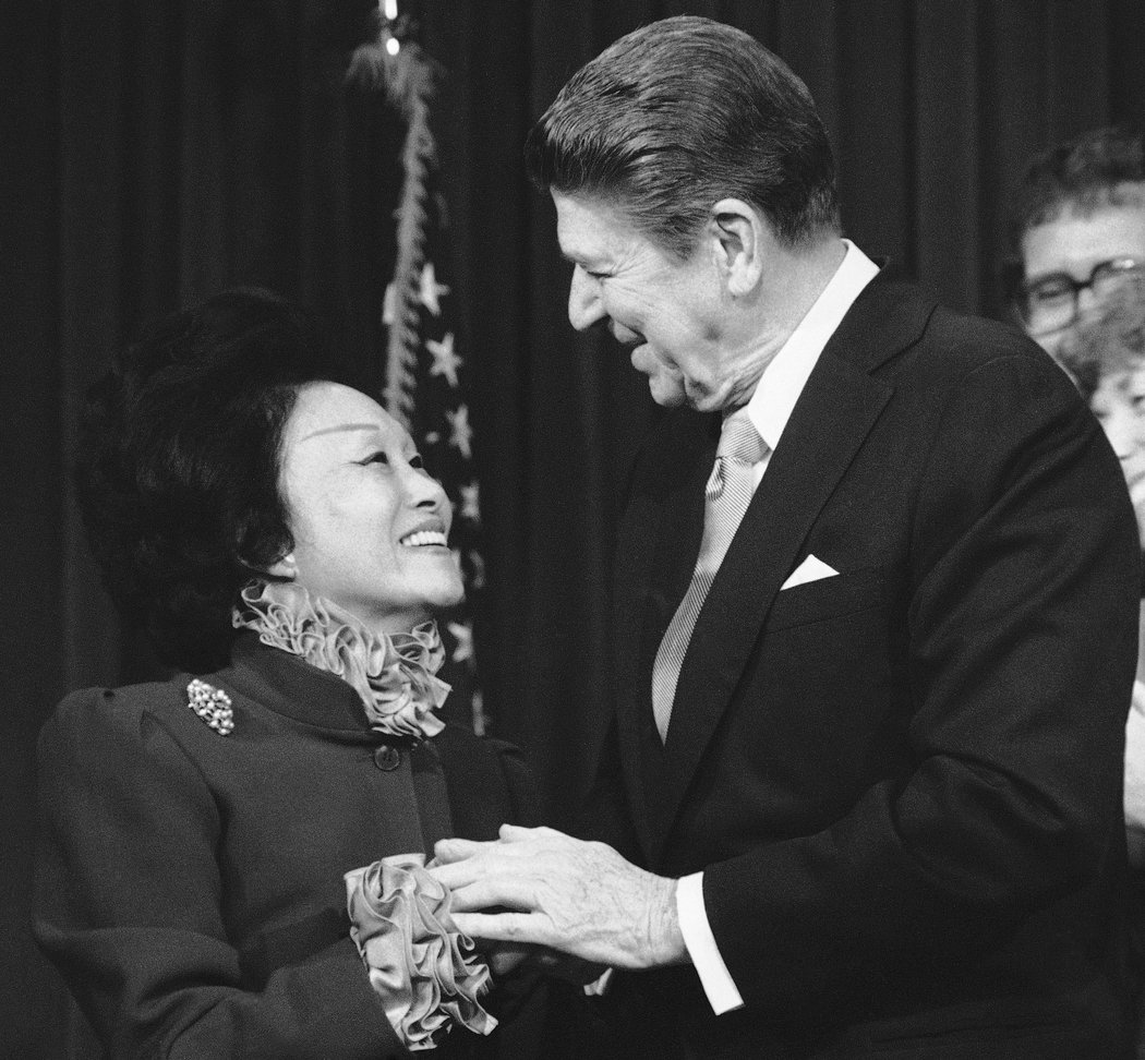 但唐湘龍卻帶着“公允心”,為西方這套“眯眯眼”審美霸權辯解。一方面,唐湘龍聲稱,東方人不鮮明的輪廓特性讓西方人會“臉盲”,西方人只能通過“特徵”記住人。為此,他特意提到美國志願援華航空隊 ( 飛虎隊 ) 指揮官陳納德的妻子、著名美籍華人、中美“友好使者”陳香梅,稱她妝容誇張就是為了讓那些對東方人臉盲的西方人,認得出她。