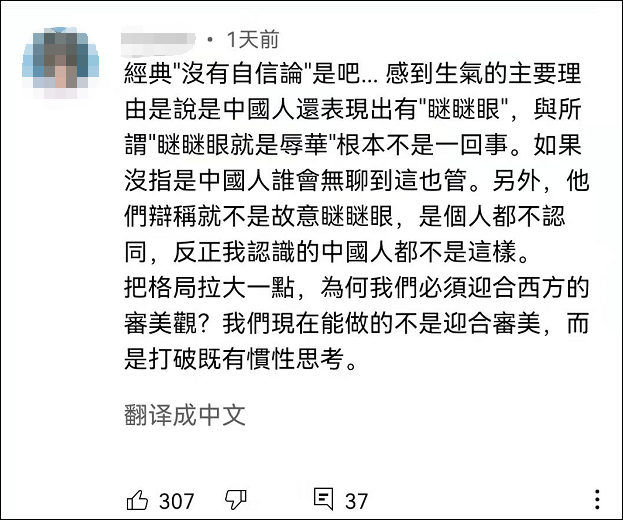 這種上來就轉移矛盾的焦點,並把問題歸到大陸網友頭上的言論,不禁讓人想問,陳鳳馨、唐湘龍就真的不認為西方刻意型塑的“眯眯眼”符號系統有問題嗎?