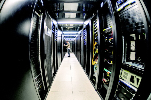 工作人員在“一碼貴州”數據平台機房檢查設備運行情況。圖源:新華社