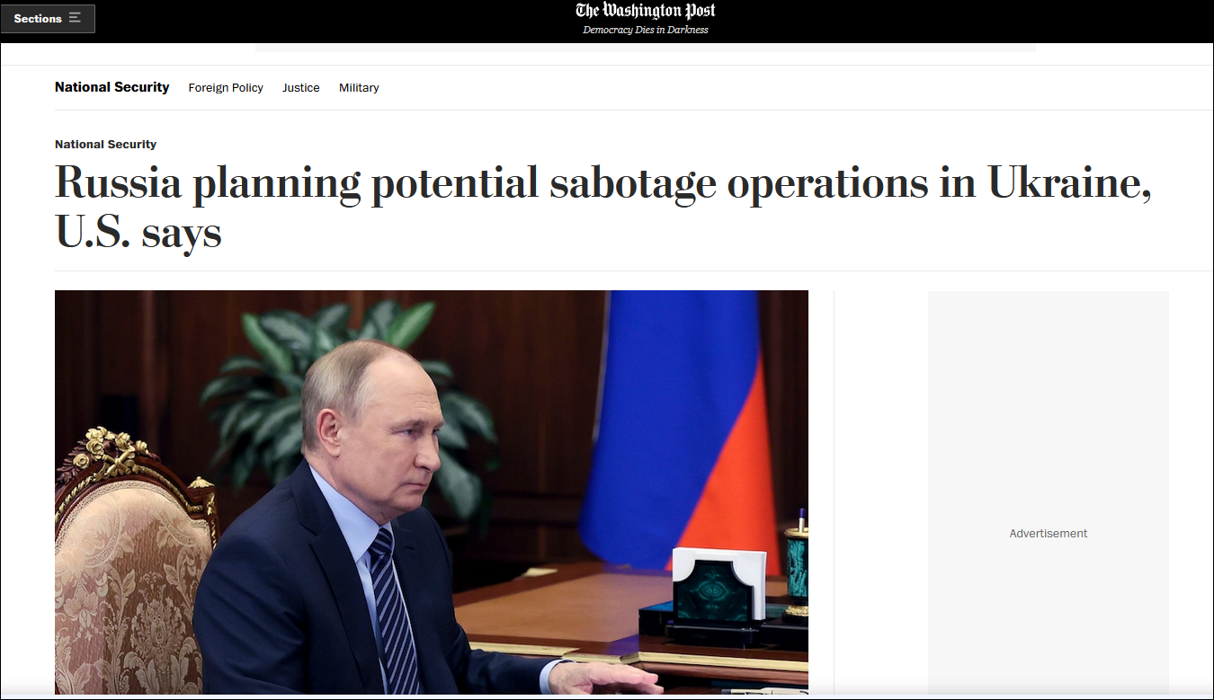 《華盛頓郵報》報道:俄羅斯計劃在烏克蘭進行潛在的破壞活動