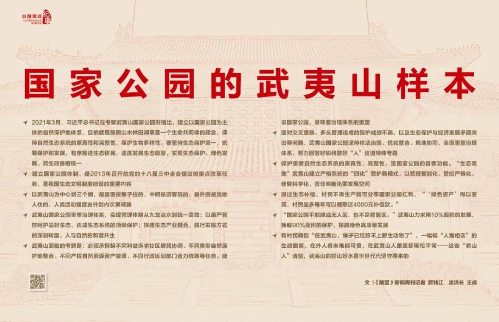 ◆ 武夷山國家公園重塑治理體系,實現管理體制從九龍治水到統一高效;以最嚴管控呵護最好生態,達成生態系統的頂級保護;探路生態產業融合,踐行發展方式的深刻轉型、人與自然的和諧共生
