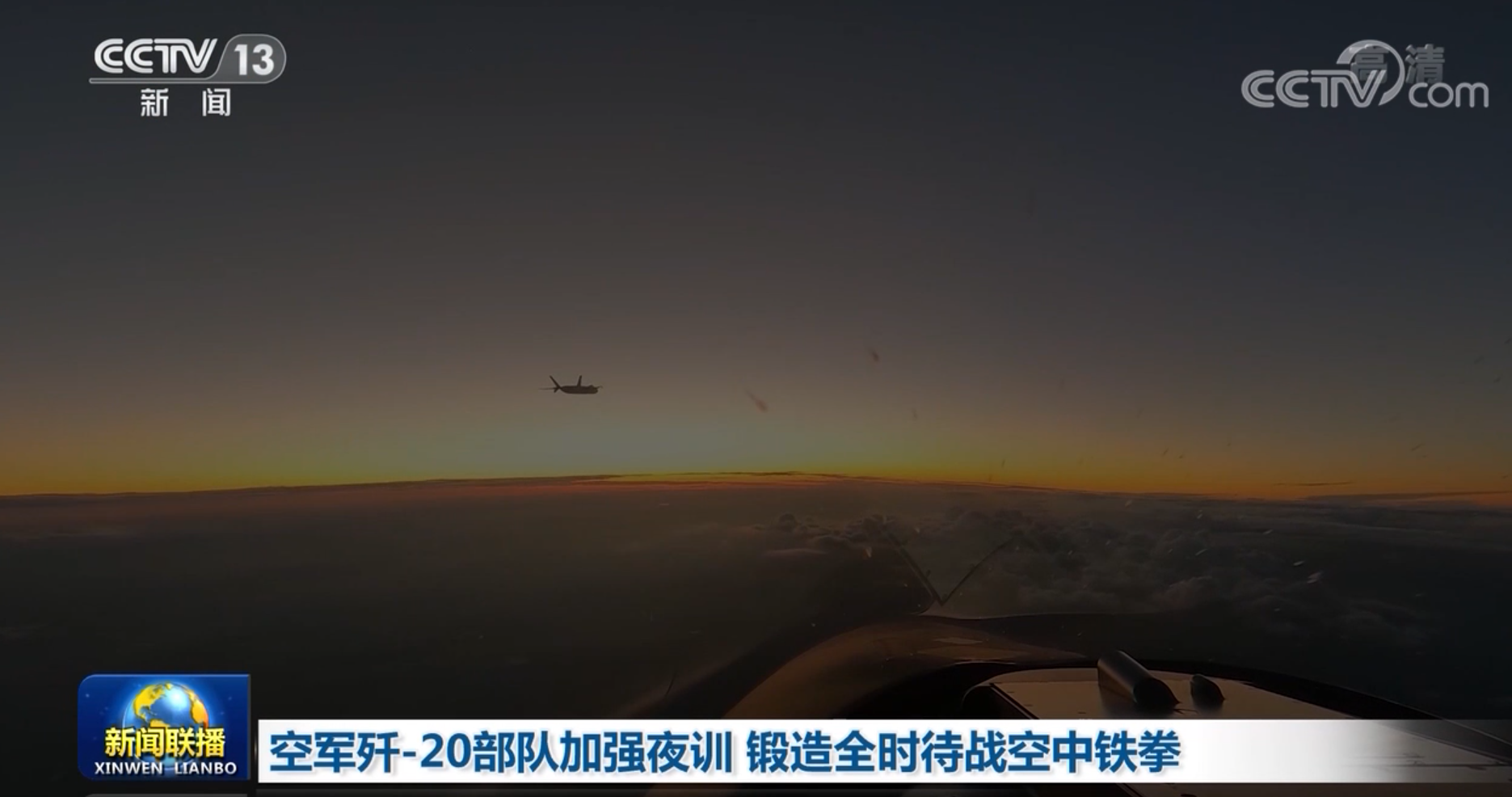 空軍某機場,四架殲-20戰機在夜色下加力升空,兩兩編組互為紅藍攻防對手,展開了激烈的超視距空戰訓練,這是這個旅新年開訓以來的首次夜航訓練。
