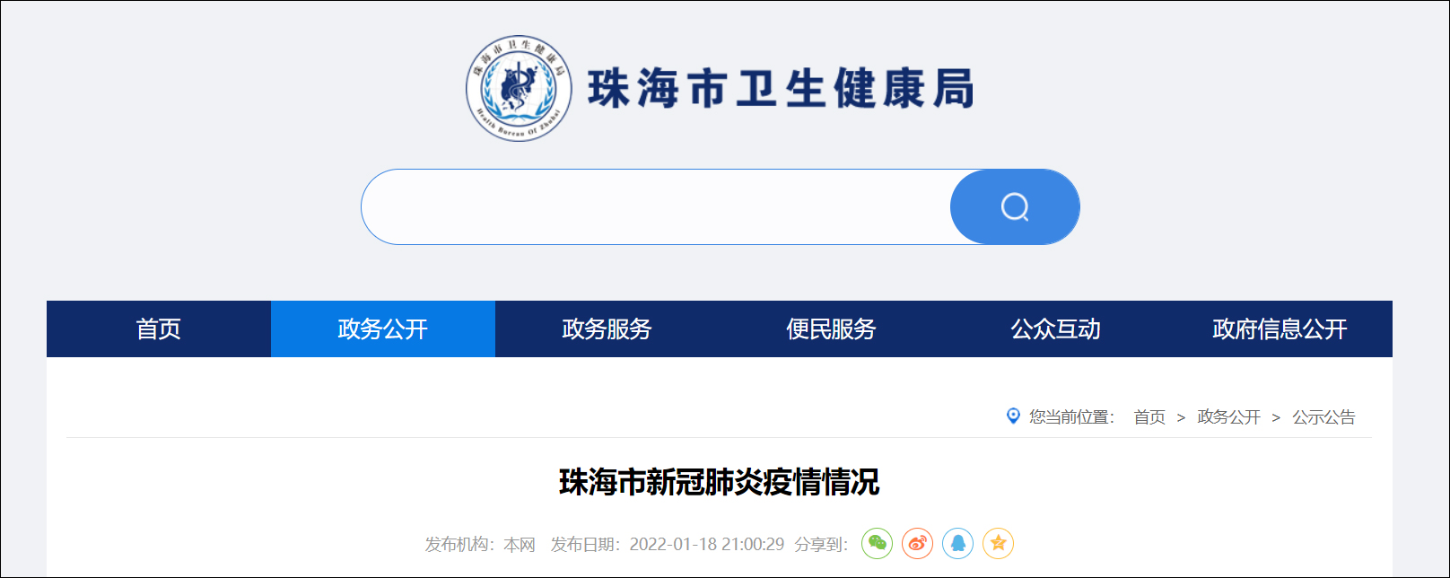 據珠海市衞生健康局官網消息,1月18日9時至21時,珠海市新增3例新冠肺炎確診病例。目前累計確診病例20例、無症狀感染者1例。