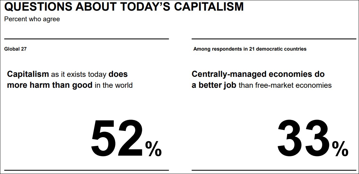 半數人質疑當今資本主義制度的有效性
