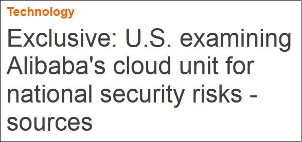 路透社18日獨家報道稱,美國正以“國家安全”為由審查阿里雲