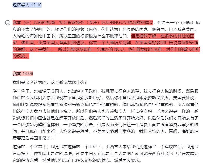 同樣是接受採訪,其他人就成了 “一位非政府組織的資深人士”、 “去年僱主成為攻擊目標的中國自由主義者 ”。要麼就直接乾脆不提創始人身份只強調組織名什麼回形針、中南屋,去保護當事人。怎麼輪到我就成了今年30歲,真名啥啥啥的?我不知道他用一個網傳的名字當作我的真名,還特別強調到底是何居心。但這種雙標的行為既沒有一個主流雜誌的專業性,也沒有媒體人應有的道德感。也難怪,會在某篇名為《從素齋到人造肉:人類食素編年表》的文章中寫出“那些堅持吃肉的人最終可能會看起來像豬一樣無知”這種半詛咒半威脅的蠢話。