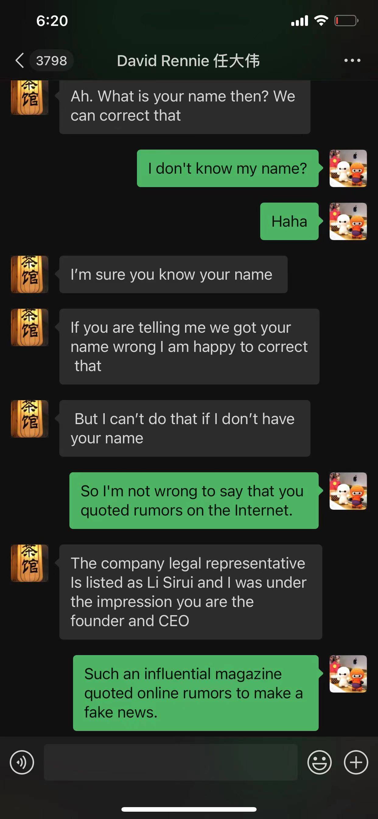 這裏呢我也正好再申明一下,這個所謂曝光的我的真名,其實是我們一個員工的名字,而作為全球享有盛名的《經濟學人》雜誌,竟然引用了黑粉為了曝光我們所謂的個人信息,在網上東拼西湊發佈的假新聞,至此為止我真的覺得,經濟學人也不過如此,只是恰好這位同事和我都姓李,導致了這個所謂的專業雜誌也信了這個fake news。