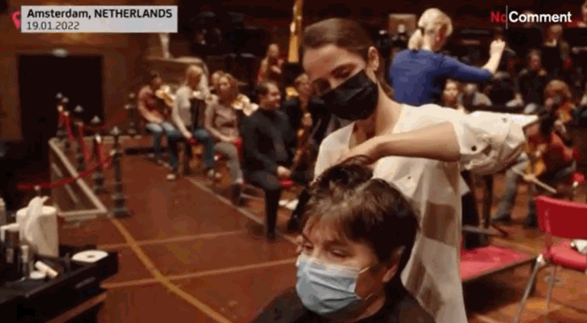 樂團指揮舞動指揮棒,理髮師舞動剪刀……1月19日,荷蘭多座音樂廳同時演了這一出。