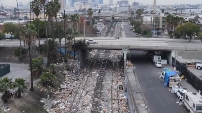 此前,經哥倫比亞廣播公司(CBS)攝影記者約翰·施賴伯(John Schreiber)1月14日拍攝曝光,洛杉磯市中心林肯高地附近鐵路“滿地雞毛”的畫面引發全美熱議。