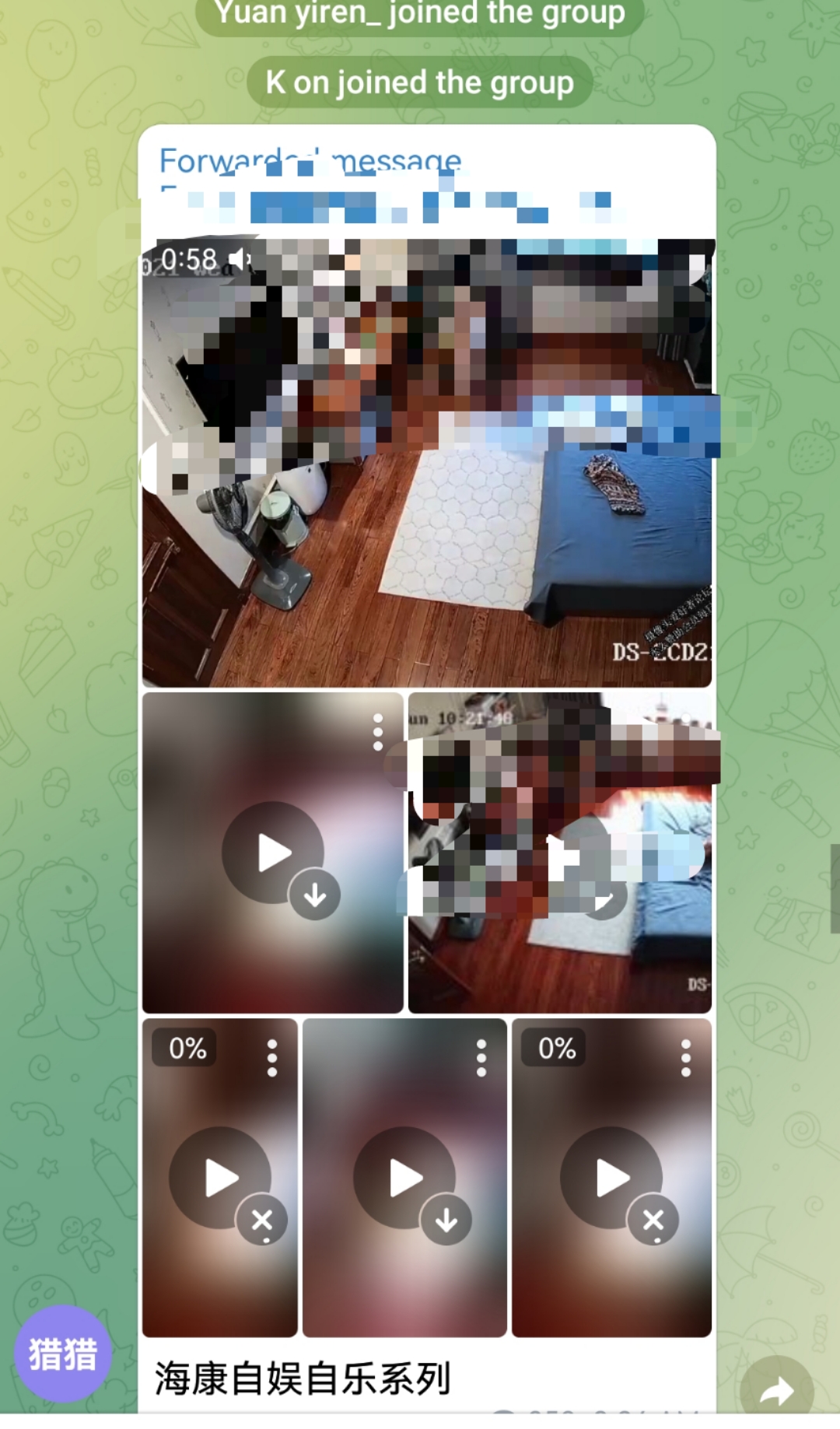 澎湃新聞近日調查發現,有不少國內監控視頻在境內外網絡平台傳播,以推特(Twitter)、電報(Telegram)和QQ等平台為主。這背後形成了一條利益鏈:有人私自安裝偷拍攝像頭或破解他人攝像頭權限,然後將攝像頭ID出售,供人實時觀看,還有人專門做賣家的下線代理。