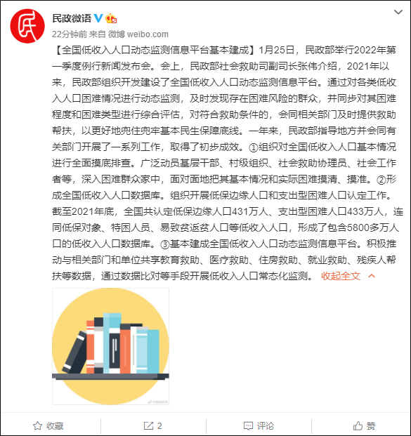 民政部:截至2021年底全國共認定低保邊緣人口431萬人