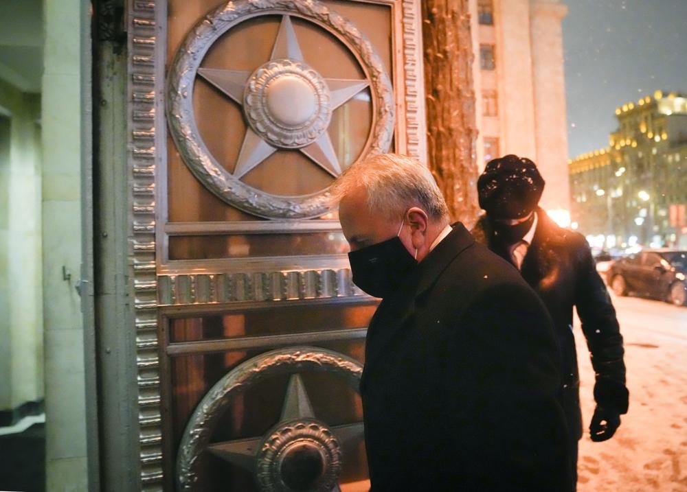 1月26日,美國大使進入俄外交部。圖自美聯社