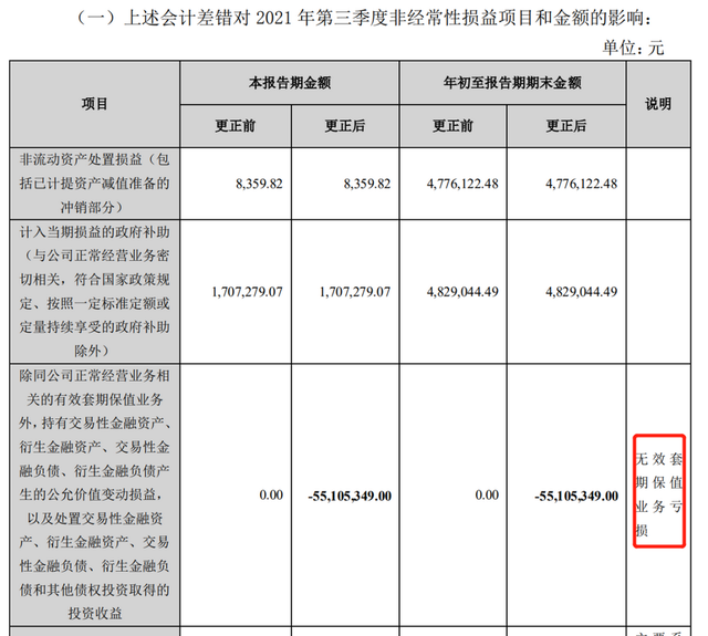 具體來看,該公司將此次期貨賬户逾5000萬元的虧損定義為無效套期保值業務虧損。