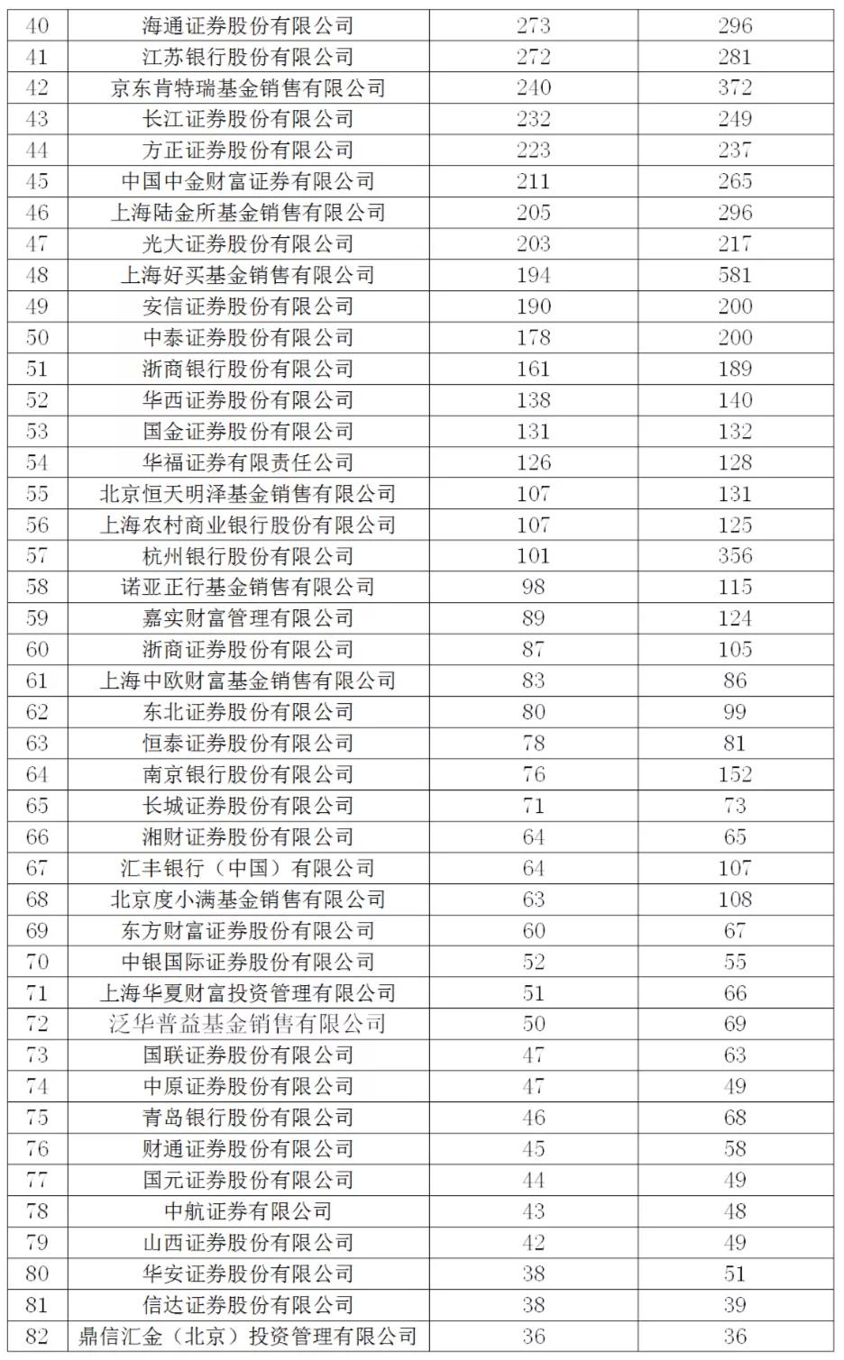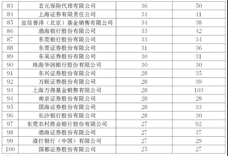 1月28日,中國證券投資基金業協會微信公眾號“中國基金業協會”發佈了基金代銷機構公募基金保有規模前100家(2021年四季度)名單。