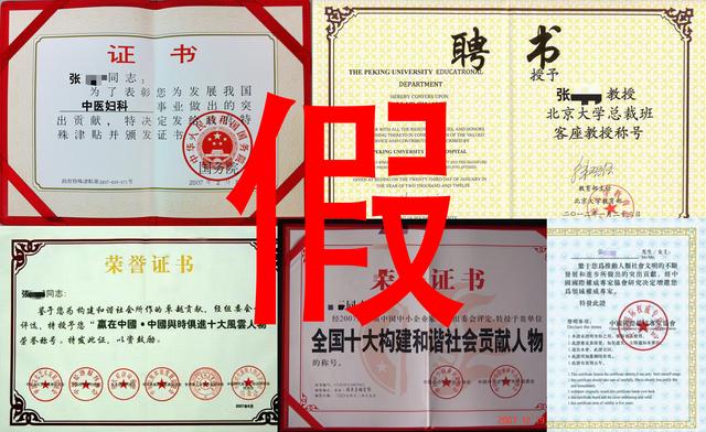 記者在警方展示的證據中看到,嫌疑人張某還偽造大量證書、虛構眾多頭銜騙取信任,如中醫婦科領域“權威專家證書”、“贏在中國·中國與時俱進十大風雲人物”榮譽證書、“政府特殊津貼”證書、“北京大學總裁班客座教授”聘書等等。