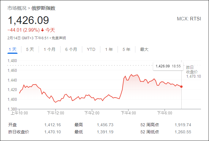 俄羅斯市場週一上午大幅下跌,俄羅斯RTS指數一度跌超5%,俄羅斯MOEX指數跌近4%,但在普京表態後拉昇上漲。