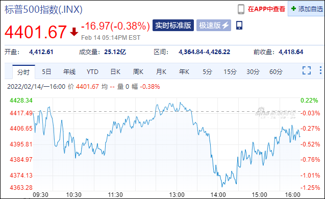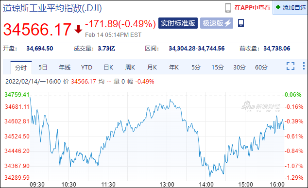 道指下跌171.89點,至34566.17點;標普500指數下跌0.4%,至4401.67點;納指收盤跌不到1點,至13790.92點。納斯達克指數早盤一度上漲近1%。