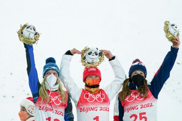 2022北京冬奧會自由式滑雪女子空中技巧頒花儀式,徐夢桃奪得冠軍