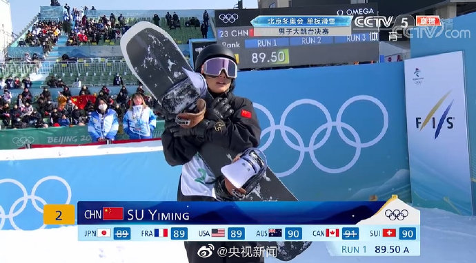 賽後,蘇翊鳴喜極而泣。接受採訪時,他表示:“我知道我父母今天來看比賽,我不能和他們近距離接觸,但是我真的很激動。謝謝我的父母,我的教練,我的祖國!”