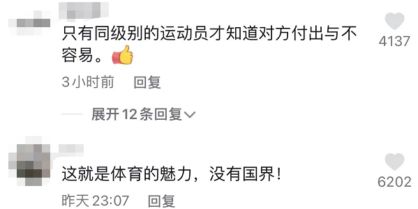 這温暖的一幕感動了中國網友,“一聲‘桃桃’叫得我熱淚盈眶”“這就是體育的魅力”;