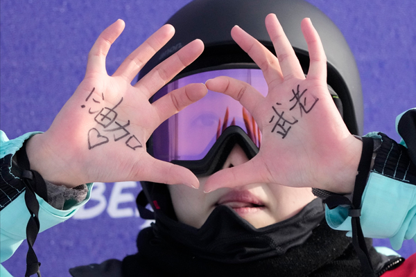 在當日的決賽中,她的四川隊友邱冷麪對冬奧會的鏡頭伸出雙手,比了個心,兩隻手的手心裏赫然寫着四個字“老武加油!”