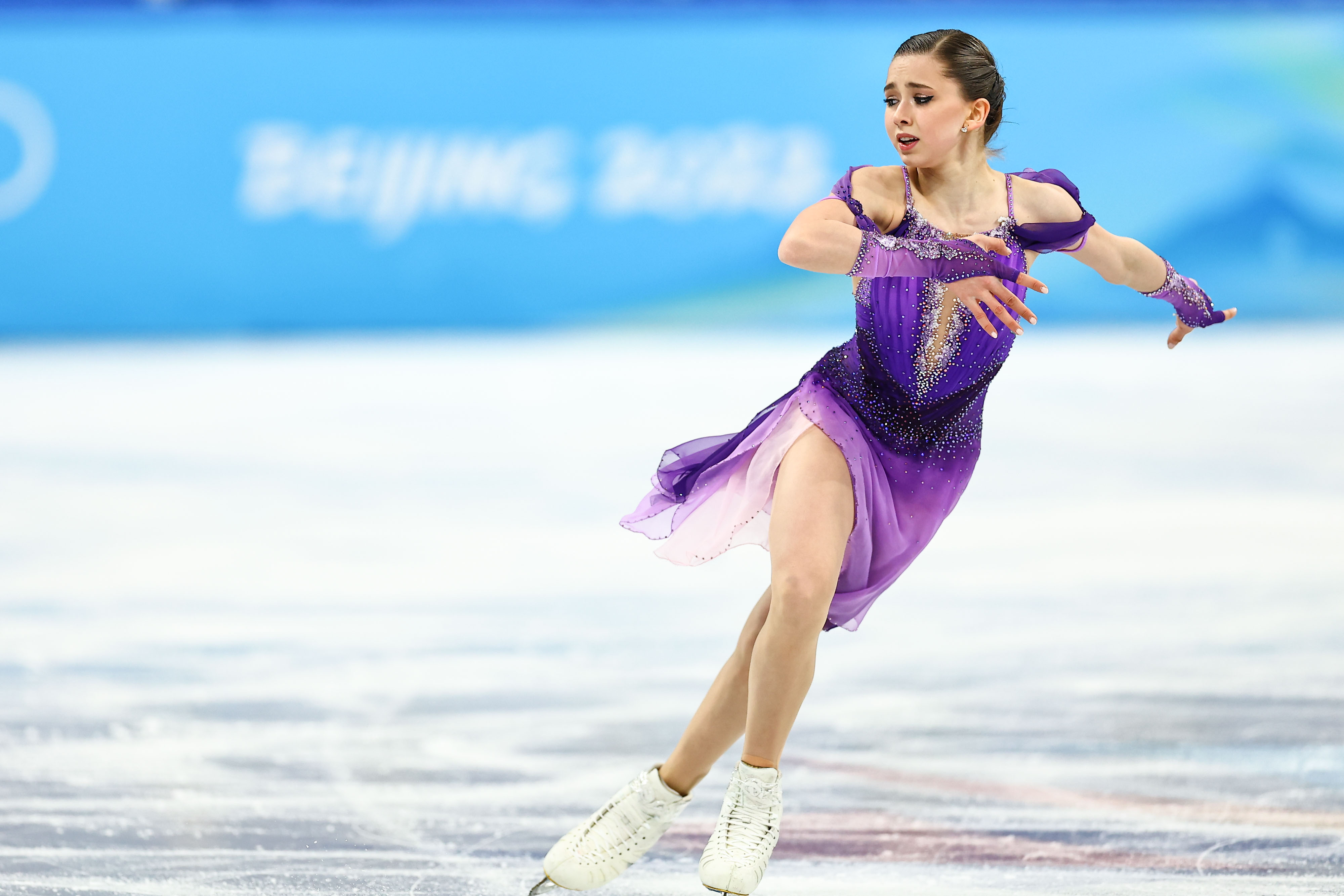 2022年2月15日,北京,2022北京冬奧會花樣滑冰女子單人短節目。卡米拉-瓦利耶娃