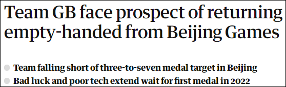 (觀察者網訊)上一次英國奧運代表團從冬季奧運會上空手而歸已是三十年前(1992年阿爾貝維爾冬奧會)的事了。然而,截至2月16日,北京冬奧會賽程過半,賽前計劃贏得3至7枚獎牌的英國代表隊仍無獎牌進賬。