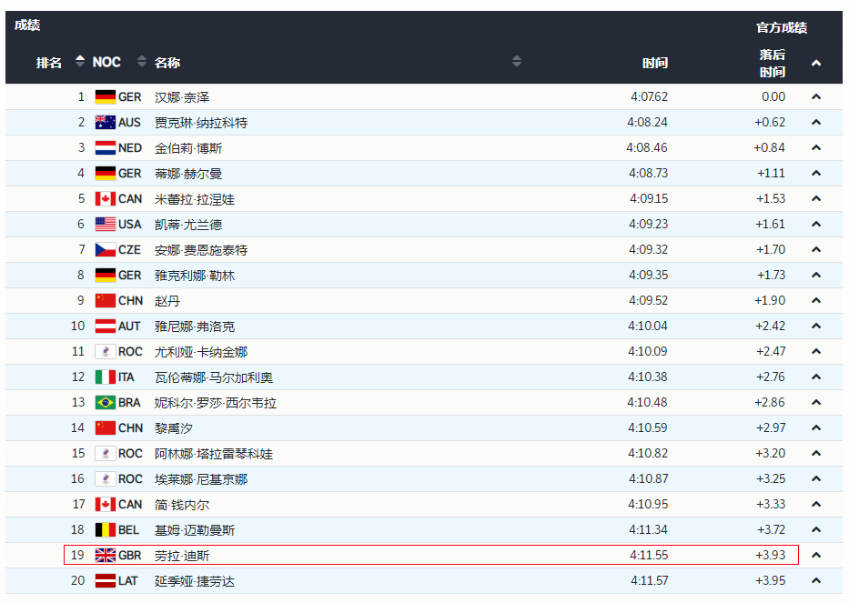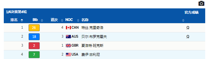 北京冬奧會女子鋼架雪車第4輪比賽成績