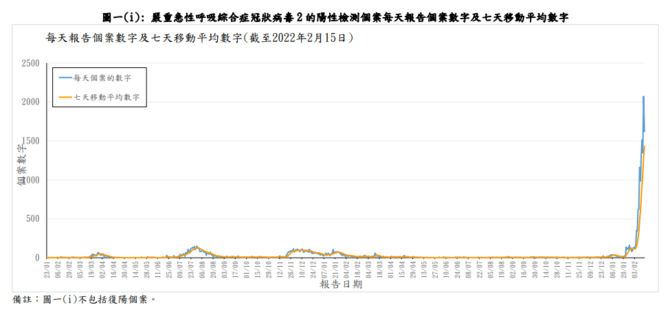 截至2月15日,香港新冠疫情感染情況(資料圖/香港政府)