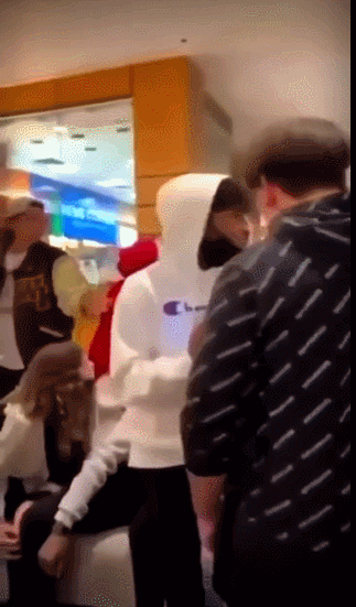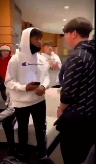 視頻裏,一羣年輕人聚集在商場的休息區。一個白人小孩和一個同齡黑人發生口角。黑人少年凱伊(Kye)和他的母親埃博內(Eboné)事後共同接受了NBC的採訪。