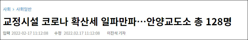 韓國《首爾經濟》報道:新冠病毒在懲教設施中無處不在…… 安陽監獄共128例