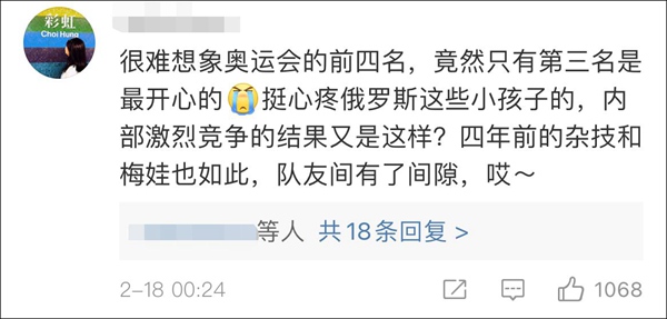 賽後,特魯索娃一度拒絕上台領獎,崩潰落淚。她反覆説道,“我恨這項運動,我討厭花滑,我不想去領獎……”