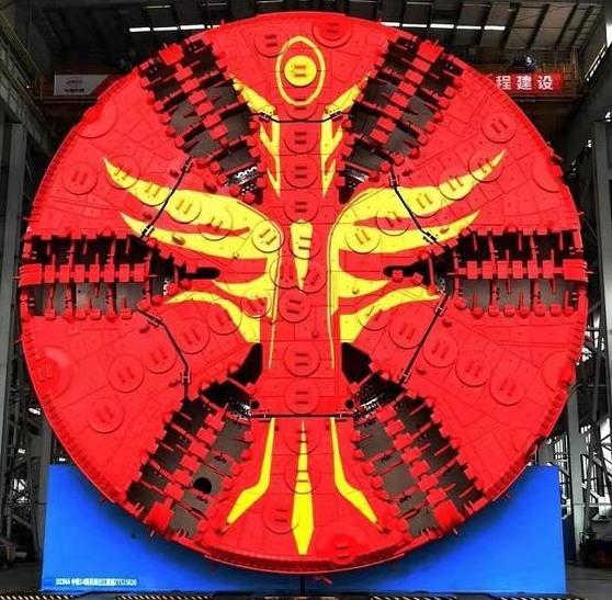 它的同事“深江2號”,其總長133米,總重約3900噸,開挖直徑為13.32米,刀盤圖案採用的是蛟龍,寓意這台“地下蛟龍”乘風破浪、無往不利。