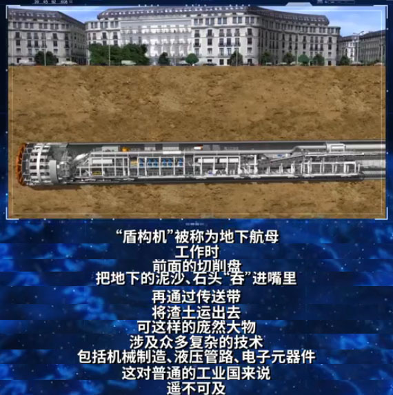 眾所周知,盾構機是掘進隧道的利器,工作時,前面的切削盤把地下的泥沙、石頭吞進嘴裏,再通過傳送帶將渣土運出去,使它可以在開挖地下隧道的同時,構築支撐坑壁的盾體,從而實現隧道的一次成型。