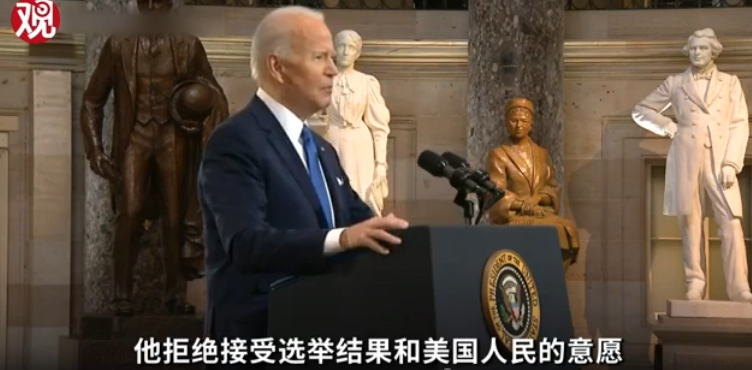 “佔領國會山”一週年,拜登發表演講。視頻截圖