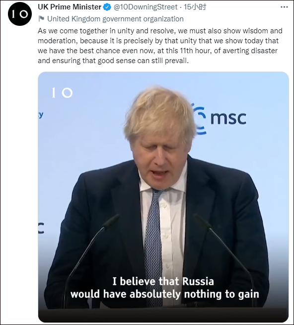 英國則在第一時間跟進。在19日的慕尼黑安全會議上,除英外相外,英國首相約翰遜也繼續渲染緊張感,聲稱有證據表明俄羅斯正在策劃“1945年以來歐洲最大規模戰爭”,還硬扯上台灣議題。