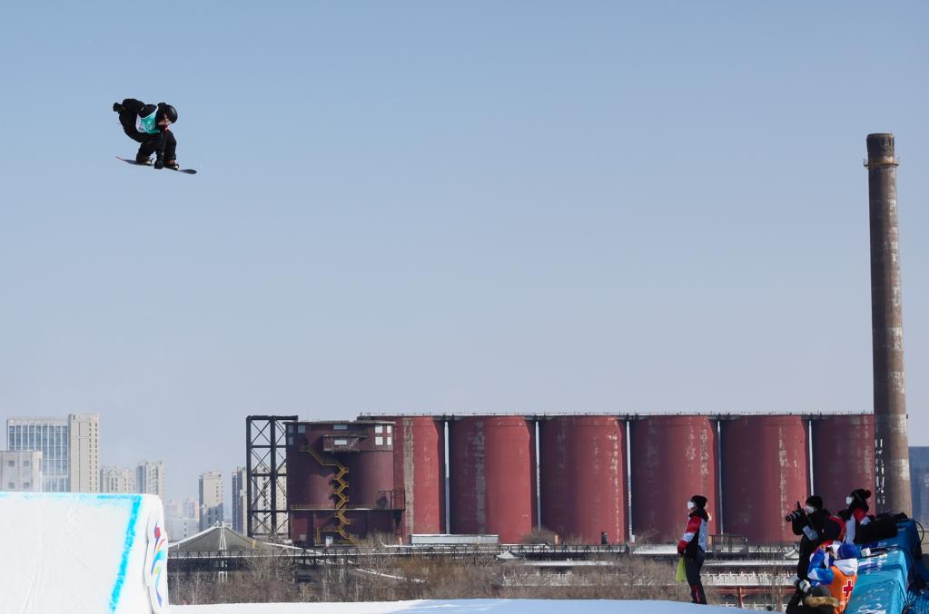 2月15日,蘇翊鳴在單板滑雪男子大跳台比賽中。新華社記者蘭紅光攝