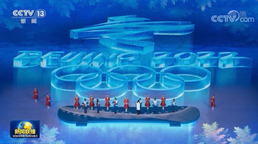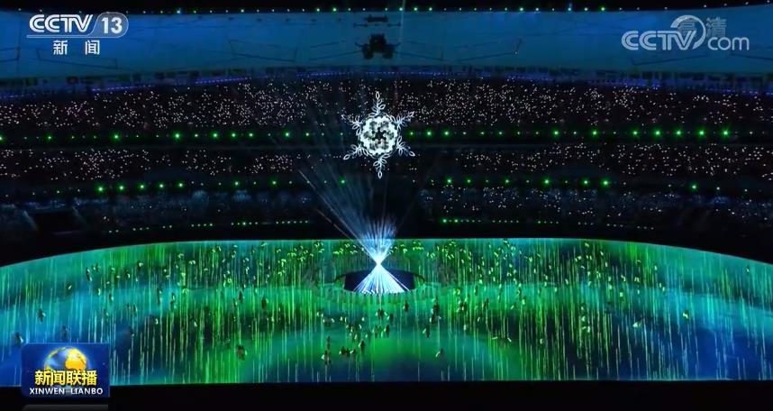 20時整,閉幕式開場表演《點亮》開始了。孩子們手提雪花花燈,以元宵節鬧花燈的傳統,點亮了場地上的“冬”字會徽。