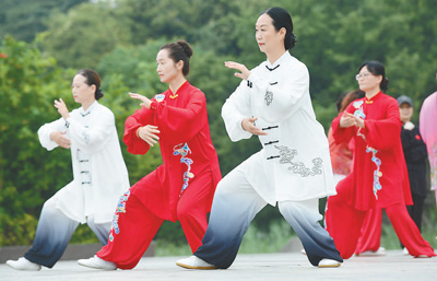 中老年人越來越注重健康生活,享受運動樂趣。圖為安徽省阜陽市的太極拳愛好者在公園內練習太極拳。 王 彪攝(影像中國)
