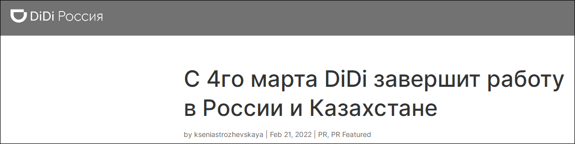 滴滴將從3月4日起停止在俄羅斯及哈薩克斯坦的業務